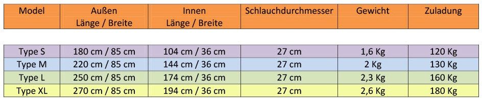 - Du darfst dir das Packraft aus unserer Tabelle unten aussuchen.